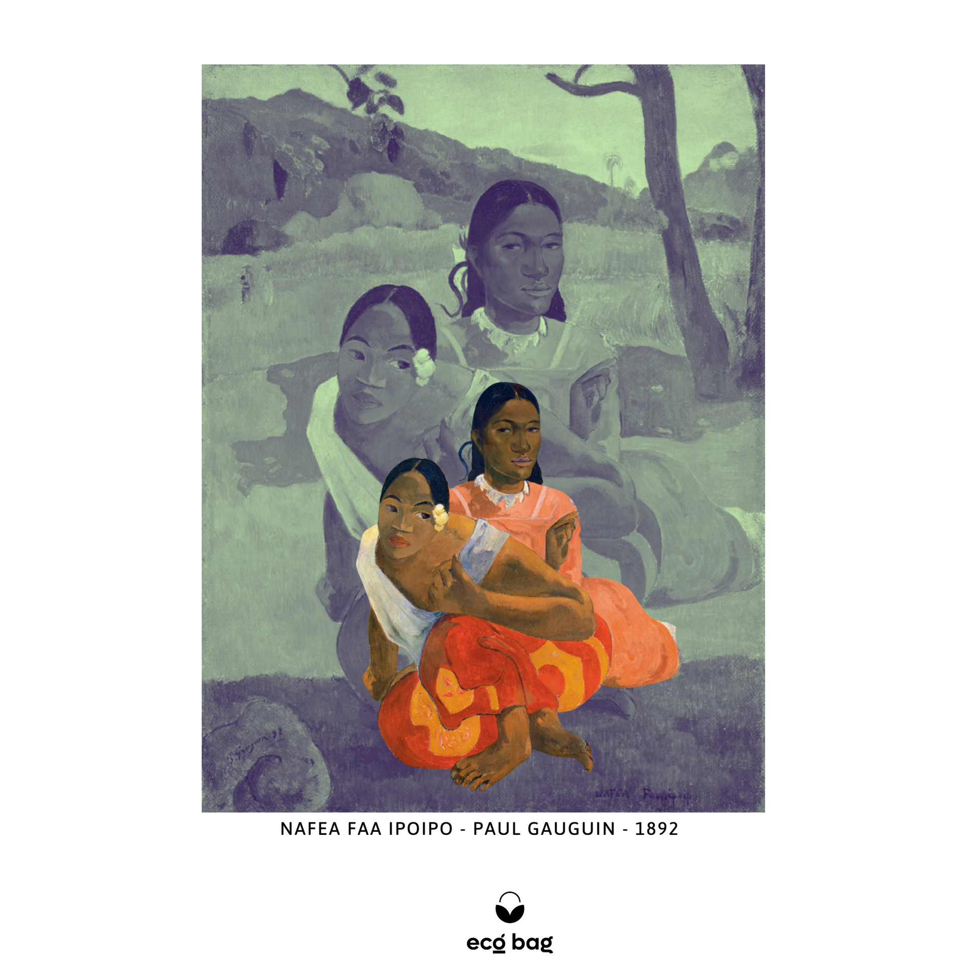 Colori vibranti, uno sguardo proiettato oltre l’orizzonte. Paul Gauguin ci parla di terre lontane e di un domani carico di possibilità. Questa borsa è un simbolo di cambiamento: un passo verso il futuro, consapevole e sostenibile.